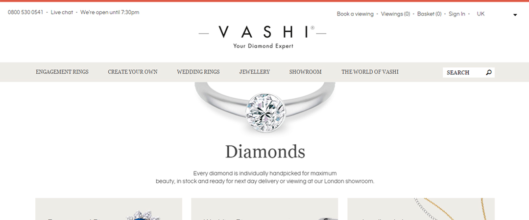 Nawiązaliśmy współpracę z Vashi.com. Londyńska firma zajmująca się sprzedażą biżuterii diamentowej zlecila nam obsługę graficzną strony/sklepu www. Wykonaliśmy szerg grafik oraz animacji. Odzielnym zadaniem było wykonanie retuszu kilku tysięcy zdjęć produktów.